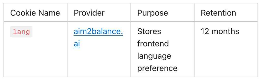 This Cookie Policy supplements our Privacy Policy and explains how Bergwaldprojekt e.V. ("we", "us") uses cookies and similar tracking technologies (hereinafter collectively referred to as "Cookies") when you access the aim2balance.ai platform ("Service").