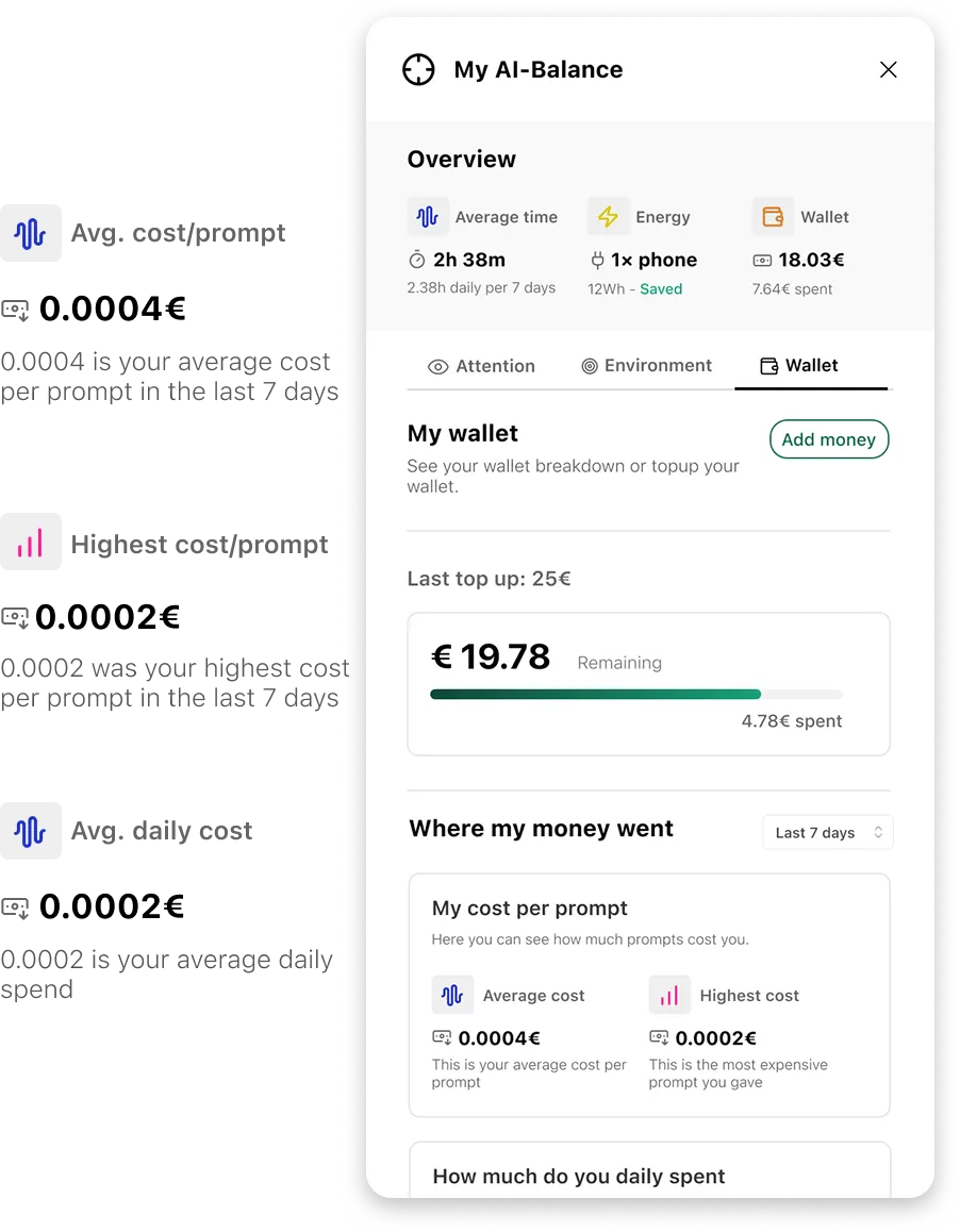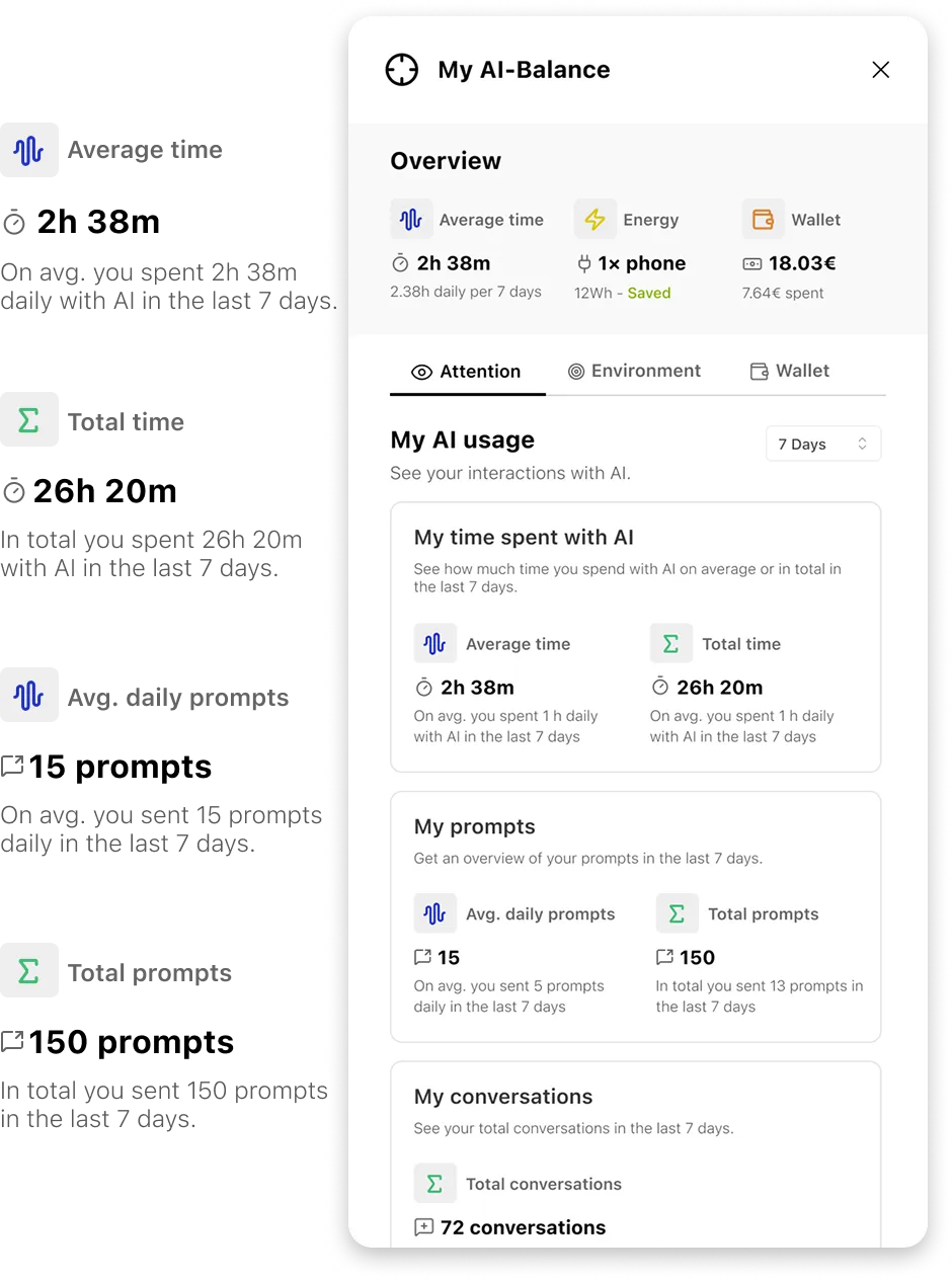 See the environmental impact of every interaction, keep full control of your privacy, and use AI consciously.